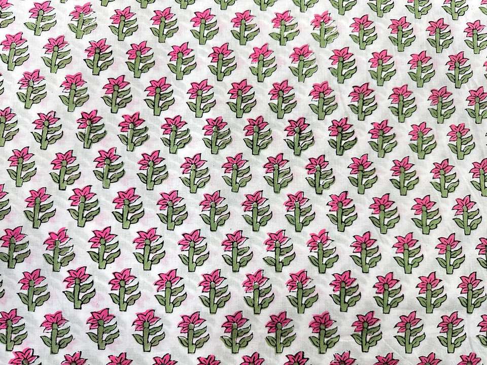 Indian Floral Printed Handmade Blocks Printed Soft 100% Cotton Pink Flower Design Wooden Print Wholesale Fabric Cheap Price
