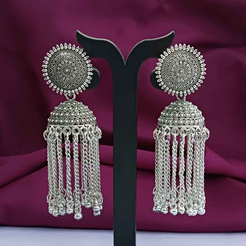 Embellished metal beaded charm with tassels, jhumka dangle earrings,