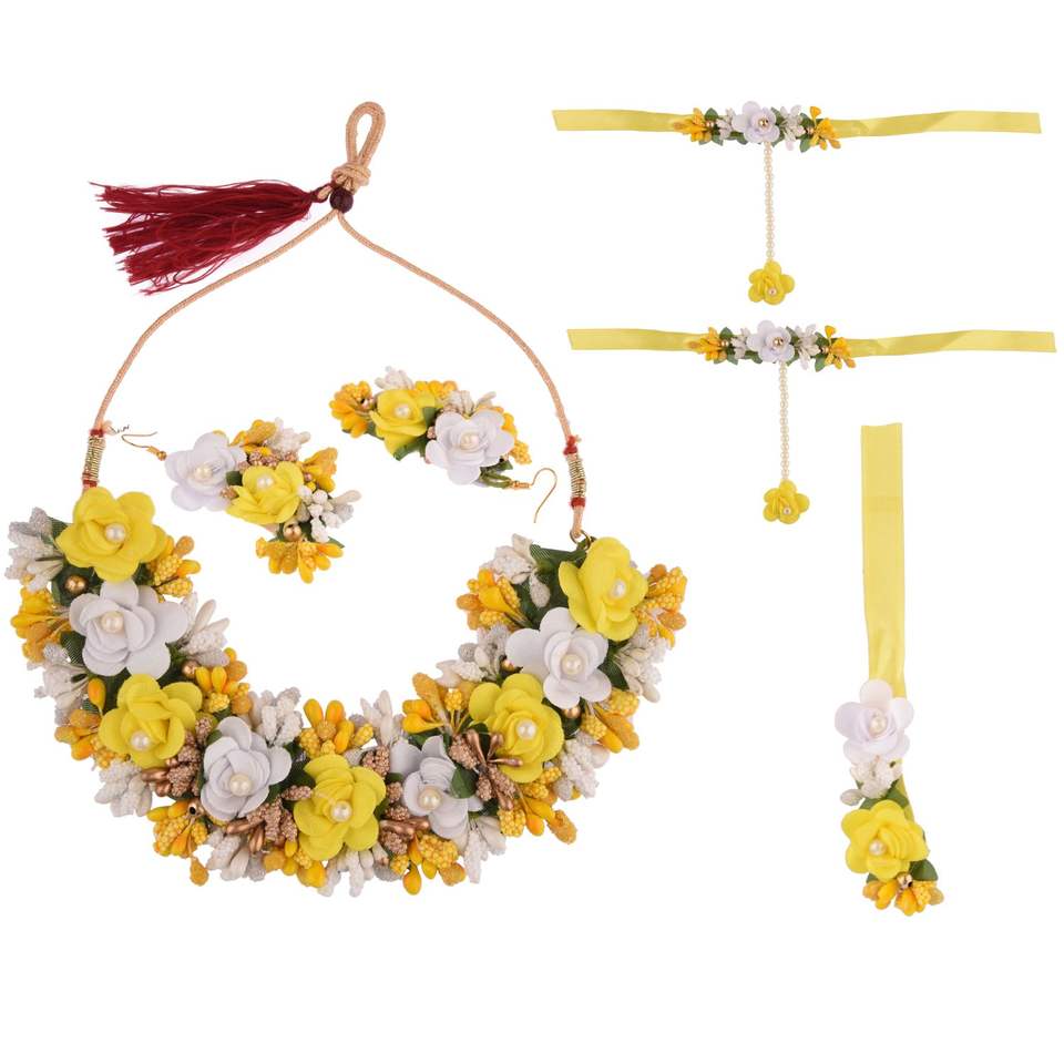 Indian Flower Jewellery Set Choker Haldi Bridal Necklace Earring Mangtikka Bracelet With Finger Ring Jewelry for Women