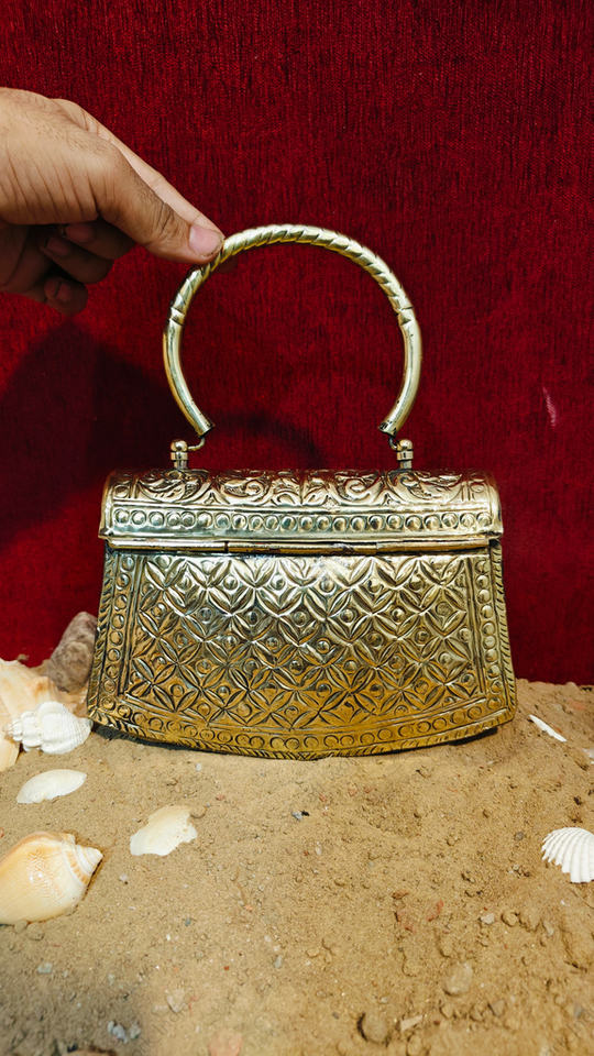 Indian Fully Handcrafted Gold Tone Metal Clutch Handbag Luxury Womens Evening Party Wedding Purse with Traditional Detailing