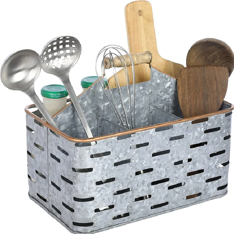 Indian Galvanized Metal Caddy Kitchen Tools Organizer Countertop Utensil Caddy for Parties for Napkins Plates Cutlery Flatware