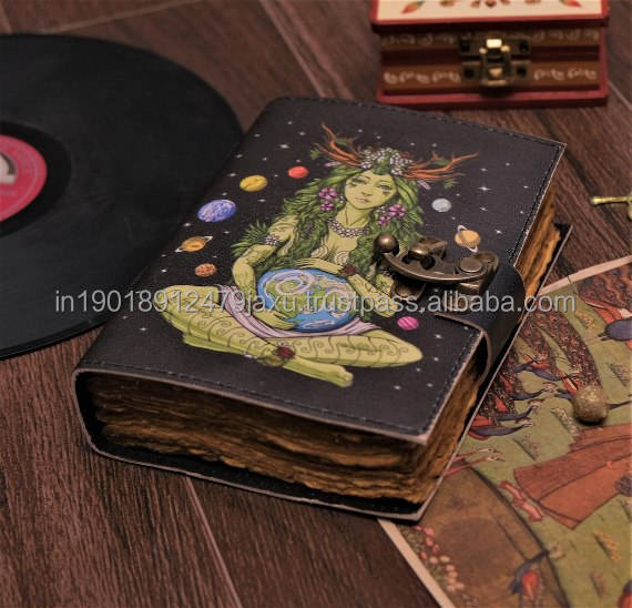 Indian Genuine Leather Journal Notebook Diary Deckle Edge Brown Paper Mother of Earth Leather Journal With Colorful Print Diary