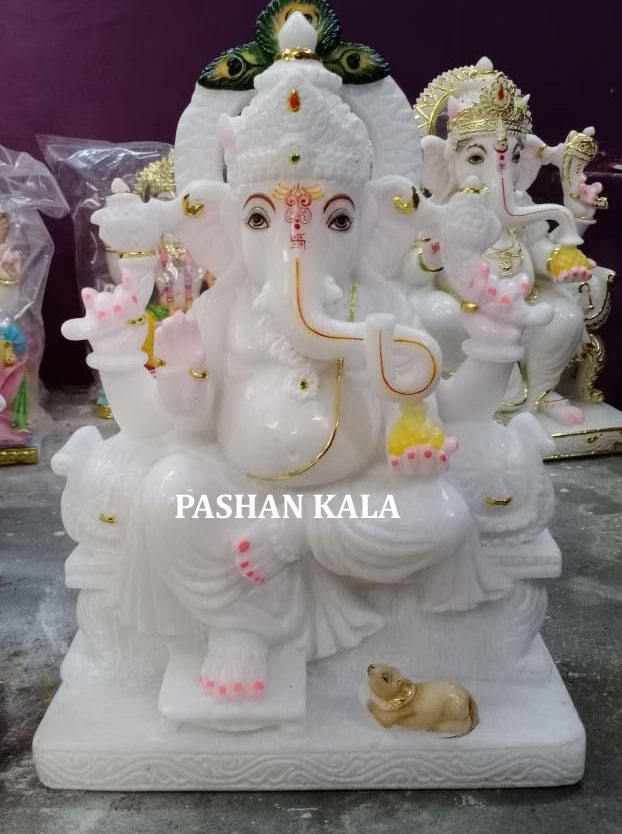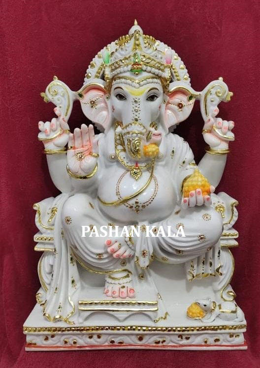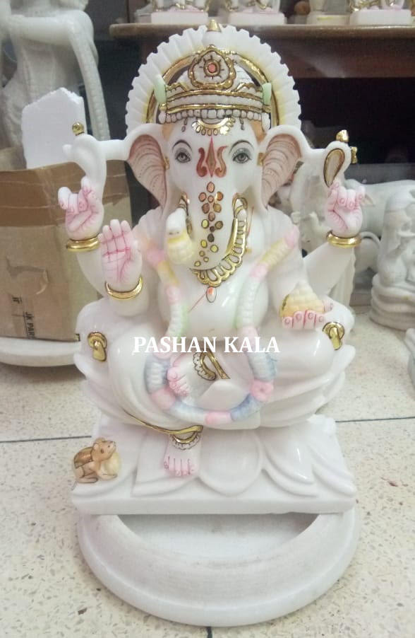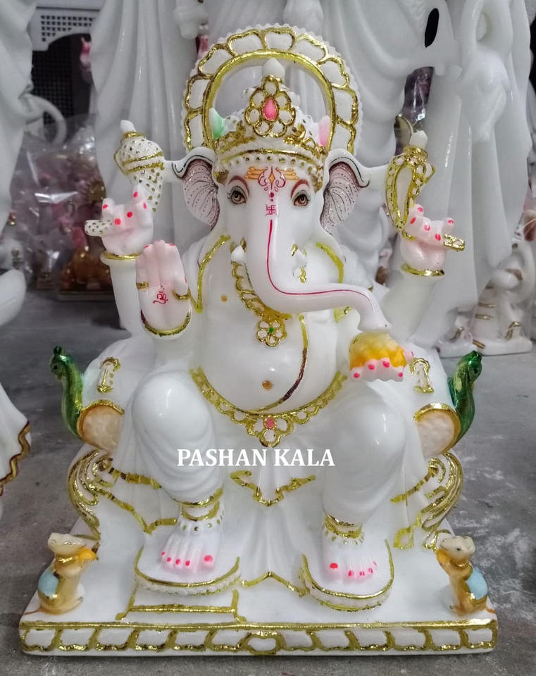 Very Beautiful High Quality White Marble Painted Ganesha God Statue For Worship Decorative White Marble Ganesh Statue For Home
