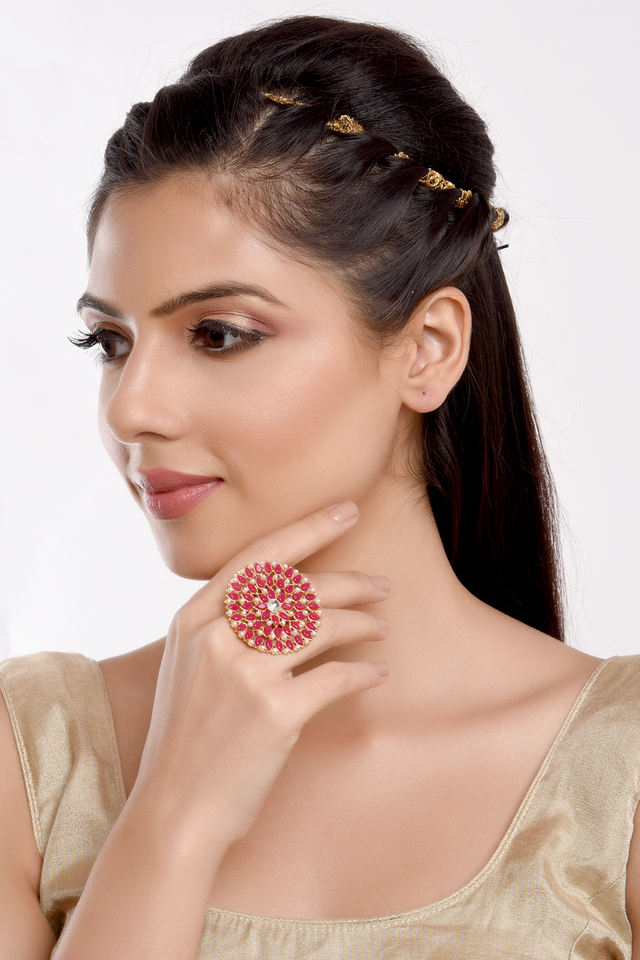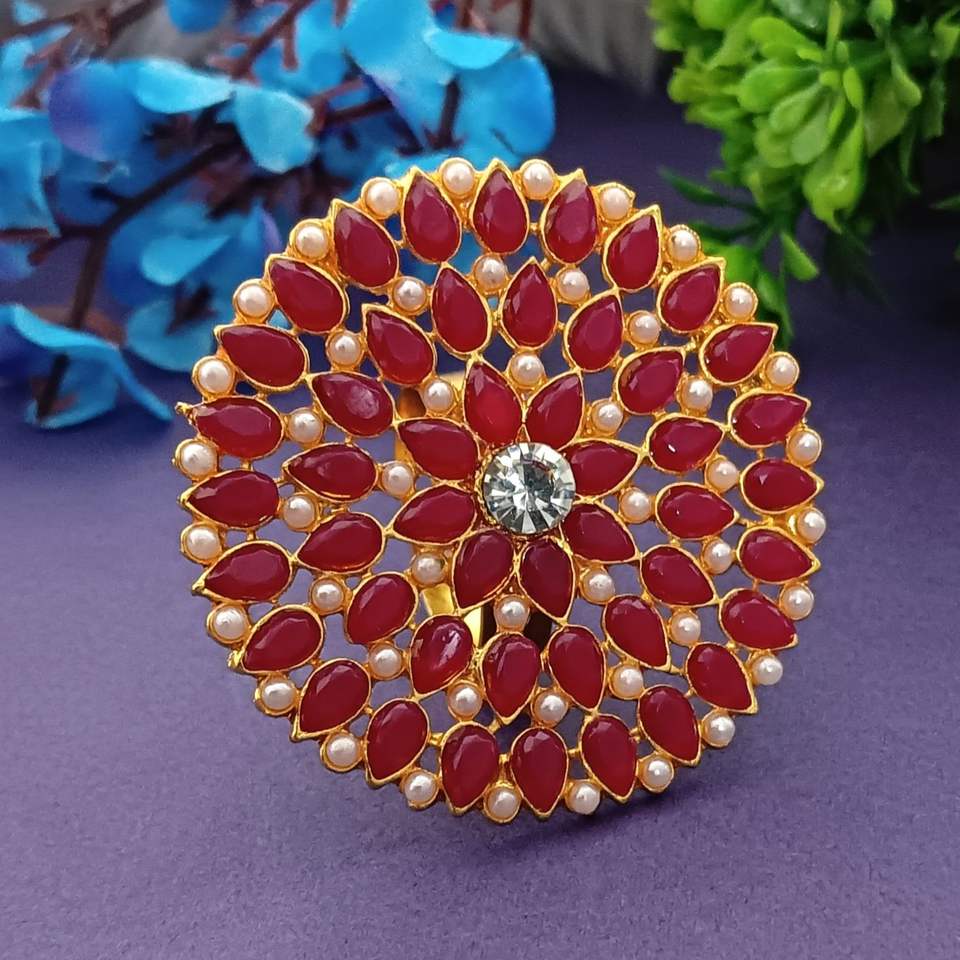 Design:Unique Indian big size cocktail cubic zirconia pearl rings