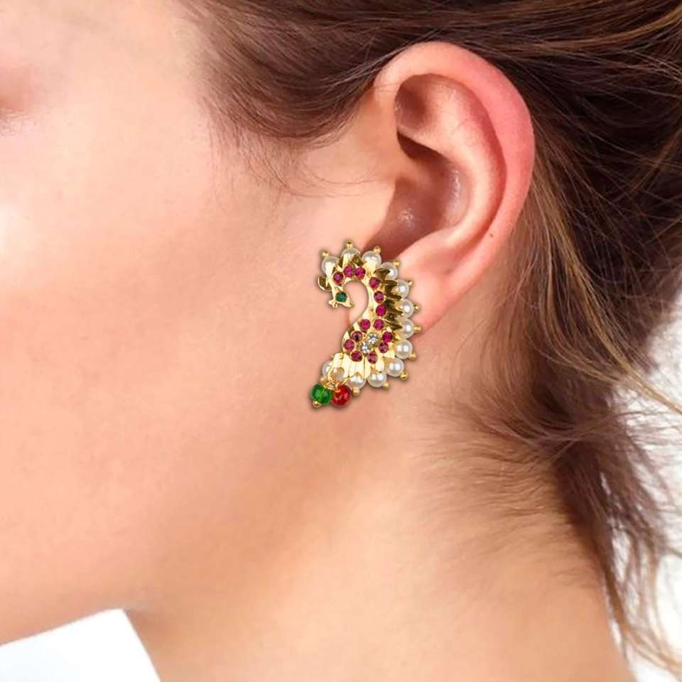 Indian Gold Plated Crystal Pearl Rhinestone Cartilage Ear Wrap Cuff Stud Earring Pierced Jewelry for Engagement