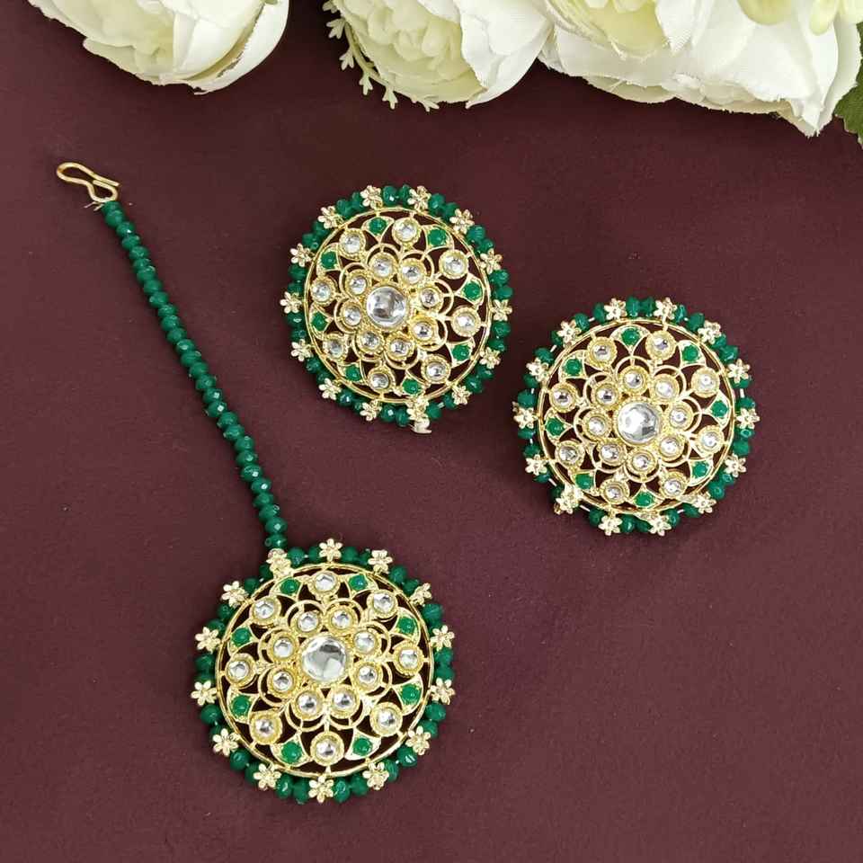 Indian Gold Plated Crystal faux Kundan Stone Head Chain Round Stud Earrings Wedding Party Statement Jewelry Set for Women