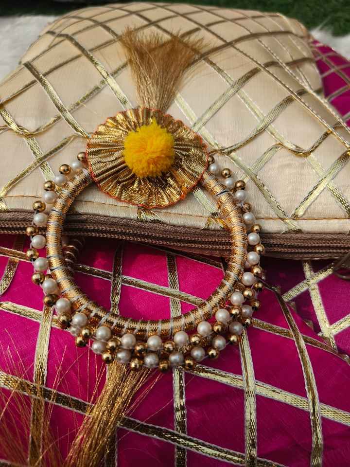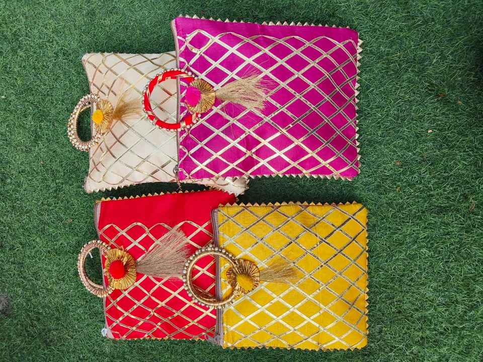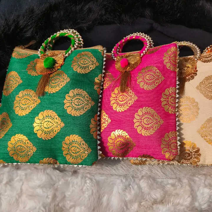 Indian Hand Bag with Stylish Pearl and Metallic Ball Handle Women's Bag Gota Work Shoulder Purses Broadcast Print Purse Gift
