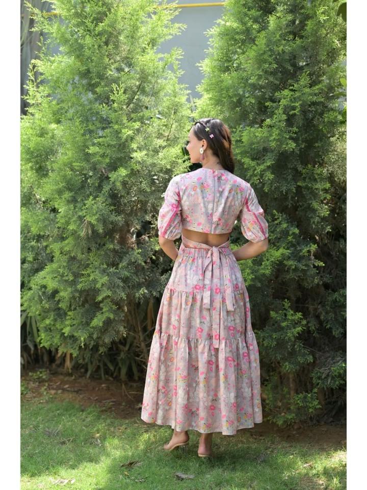 Indian Hand Block Cotton Boho-Style Midi Dress Floral Print Summer Wear Women Personalized Bride Wedding Gift Casual Sweet White