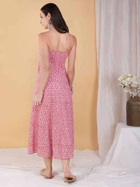 Indian Hand Block Cotton Dress for Women Floral Printed Summer Party Wear Boho Style Eco-Friendly for Bride Gift on Sale!
