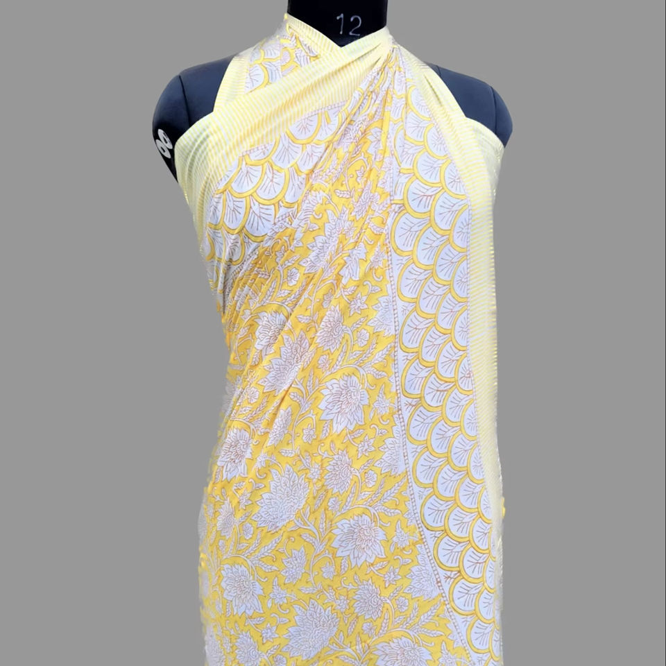 Indian Hand Block Floral Print 100% Pure Cotton Eco-Friendly Plus Size Lightweight Beach Wrap Sarong for Women 1 Piece