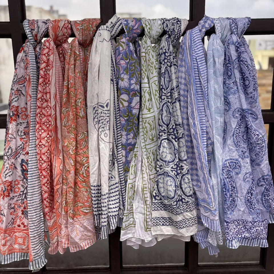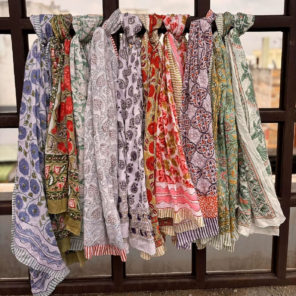 Indian Hand Block Print Cotton Sarong Boho Scarf Pareo Wrap Floral Beach Cover Up Lightweight Gift for Women Regional Clothing