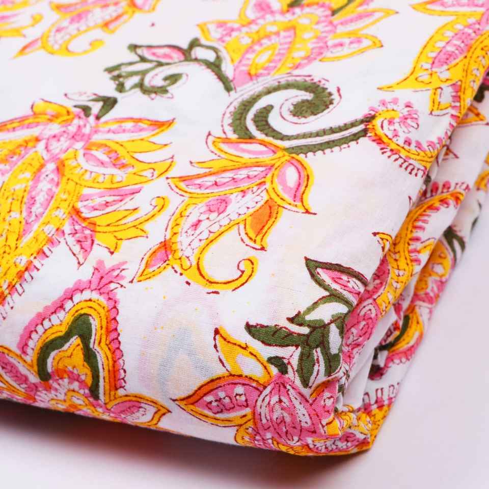 Indian Hand Block Print Fabric Beautiful Decorative Handmade Floral Print Cotton Fabric Dress Making