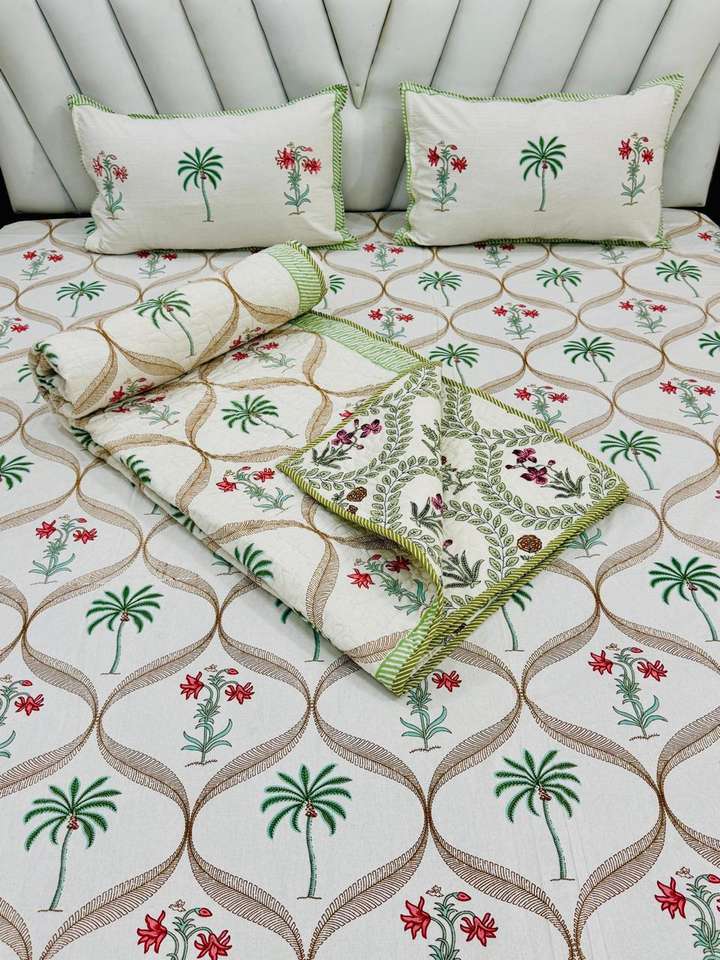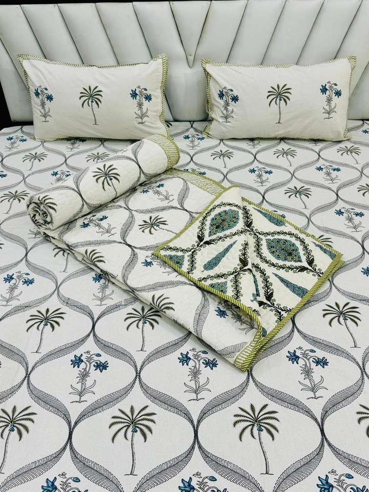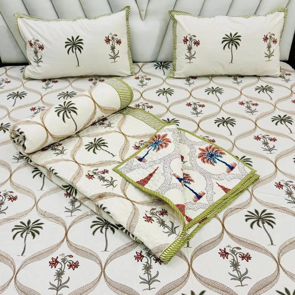 Indian Hand Block Print Kantha King Bedding Set 4pcs Quilt Cover Bed Sheet & Pillow Cover with Duvet Quilt & Bedspread