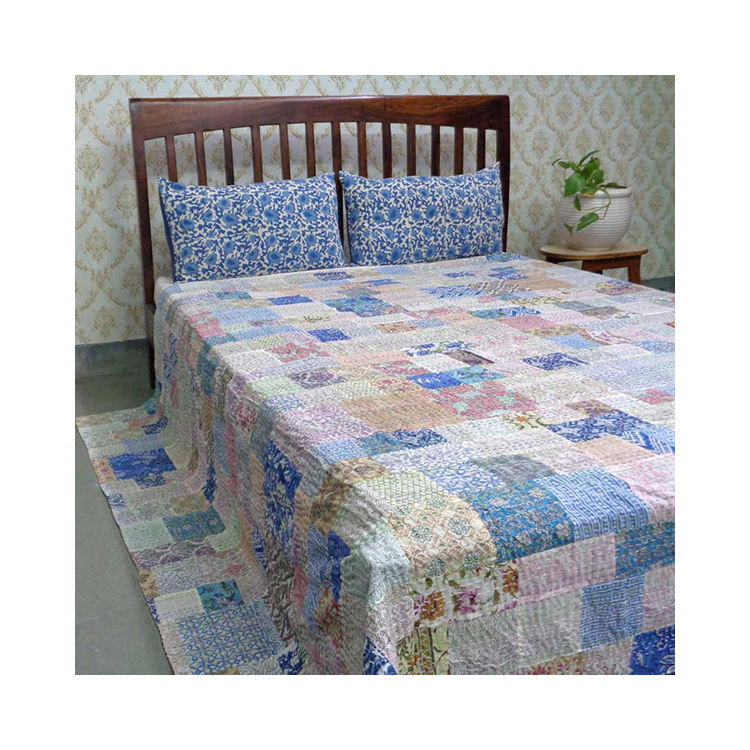 Hot Selling Indian Hand Block Printed Organic Cotton Kantha Quilt Queen Size Patchwork For Sale