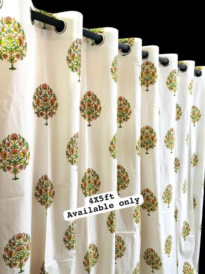 Indian Hand Block Printed Bohemian Curtains Luxury Modern Blinds for Living Room & Offices Floral Buta Hand Block Printed Design