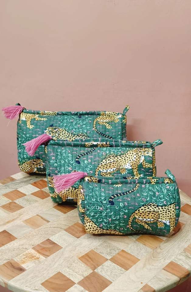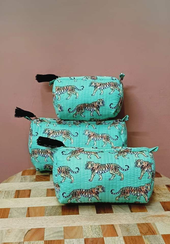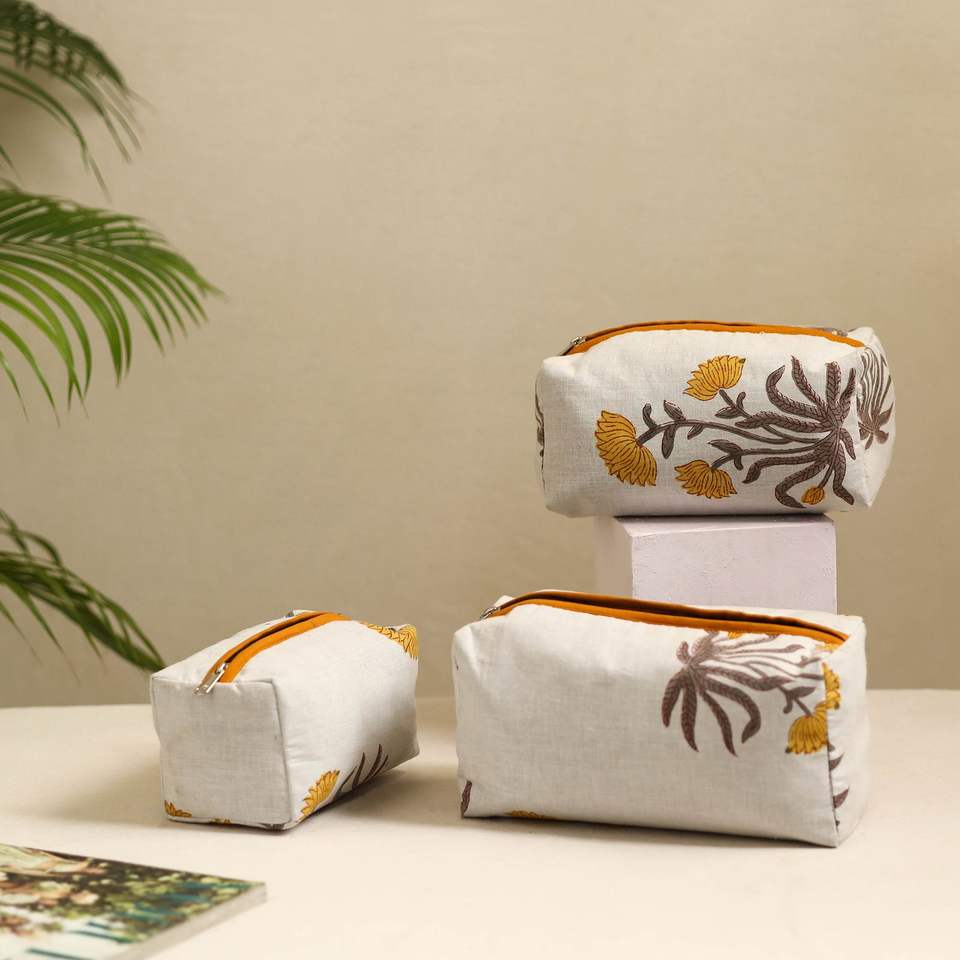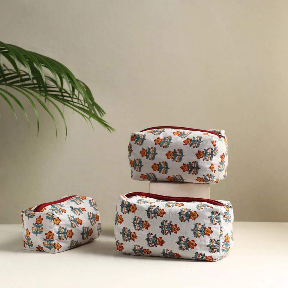 Indian Hand Block Printed Large Waterproof Toiletry Bag with Makeup Cosmetic Travel Pockets Christmas Gift Bags