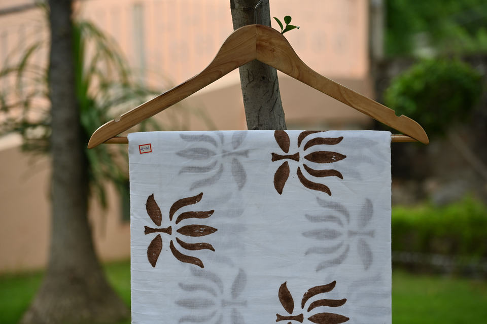 Indian Hand Block Printed Lightweight Cotton Fabric Lotus Design for Home Decor & Craft