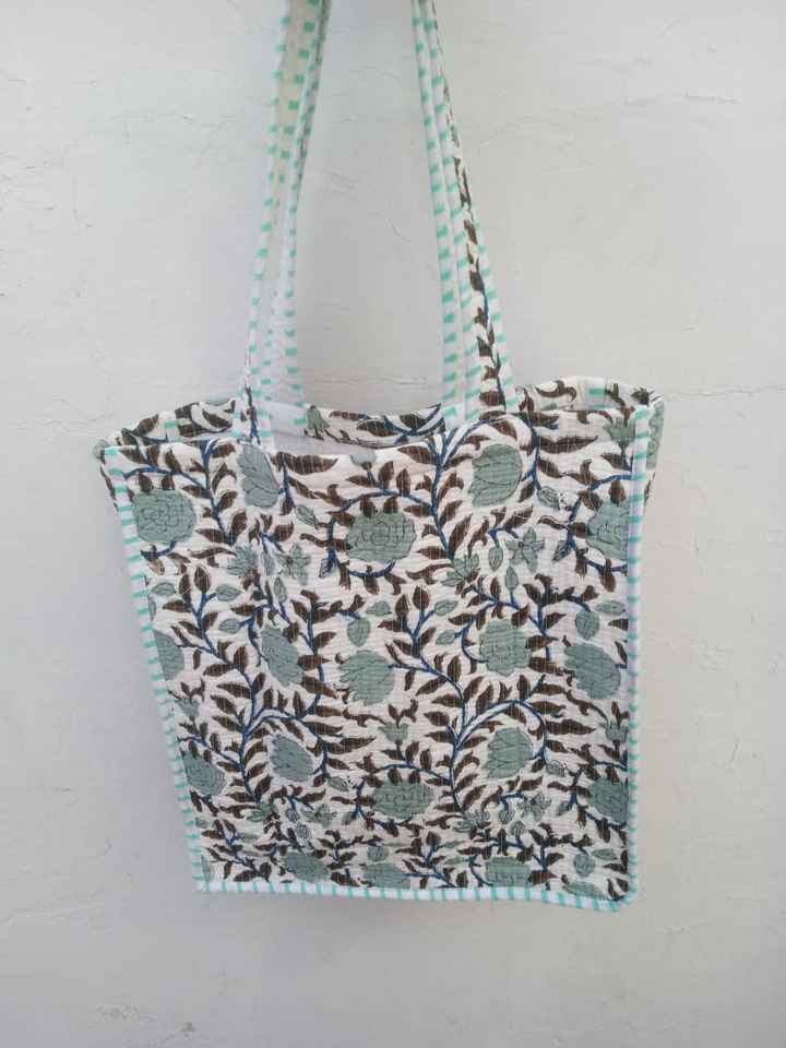 Indian Hand Block Printed Quilted Women's Winter Summer Fashion Tote Shopping Carry Shoulder Bag Multi-Color Geometric Print