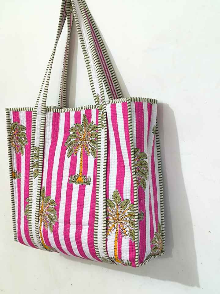 Indian Hand Block Printed Quilted Women's Winter Summer Fashion Tote Shopping Carry Shoulder Bag Multi-Color Flowers Cover