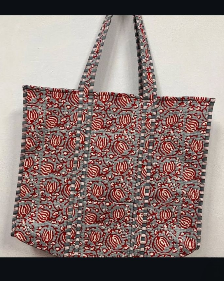 Indian Hand Block Printed Quilted Women's Fashion Tote Shopping Carry Shoulder Bag 100% Cotton Zipper Closure Customizable