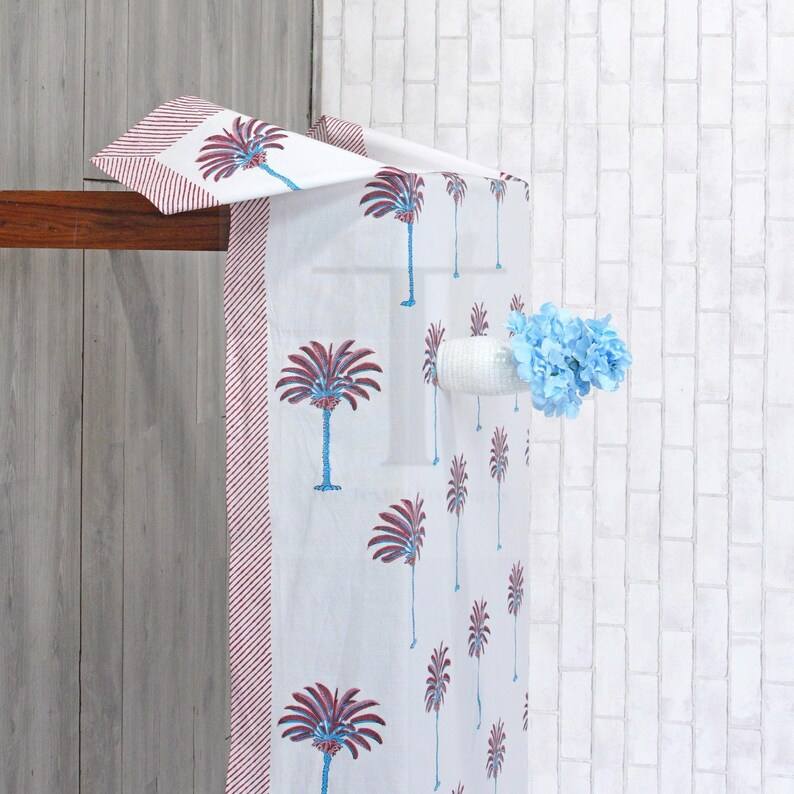 Indian Hand Block Printed Red Palm Floral Cotton Table Cloth French Country Dining Table Cover For Home