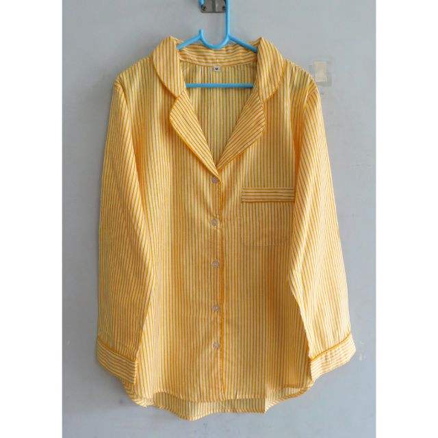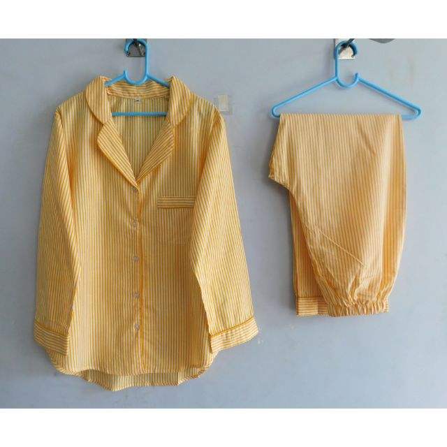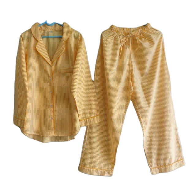 Indian Hand Block Stripe Printed Yellow Cotton Women's Long Sleeve Casual Night Suit Dress 100% Cotton Pajama Set for Summer