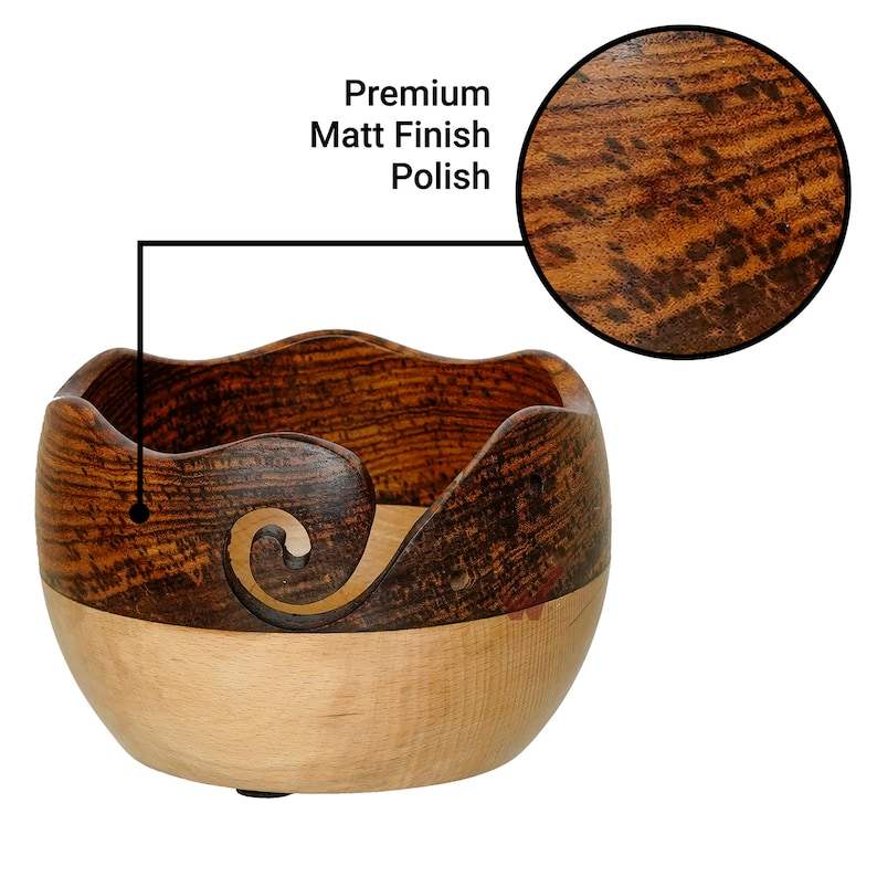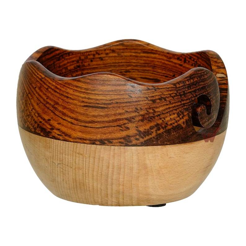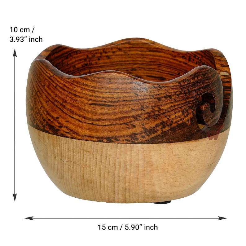 Indian Hand Carved Wooden Comb Joint Yarn Bowl 6 X 4 Undulate Handmade Premium Beech Wood Yarn Storage Bowl