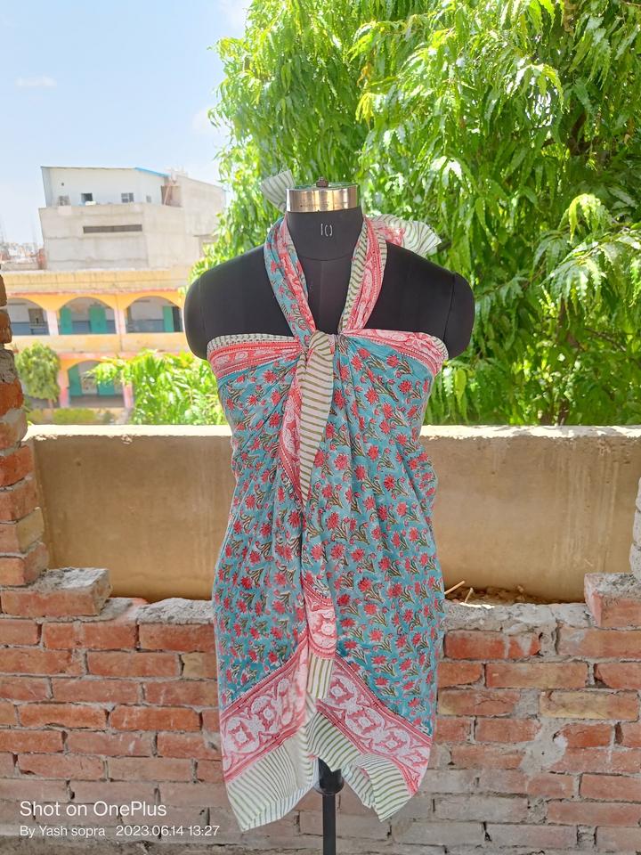 Indian Hand Made Block Printed 100% Cotton Sarongs , Pareos And Scarfs Beach Cover Ups Bikini Cover Ups Sarongs Cheap Rate Scarf