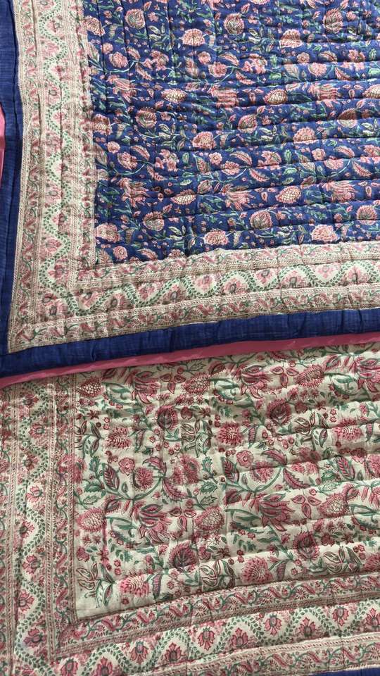 Indian Handblock Best Handmade Premium Design Best Hot Sale Quality Cotton Quilted Bedspread Set Lightweight Embroidery Printed