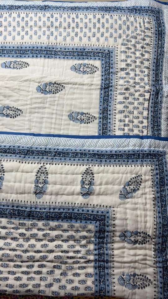 Indian Handblock Print Handmade Pure Cotton Kantha Quilt Organic KanthaQuilt Organic Reversible KanthaQuilt for Winter Uses