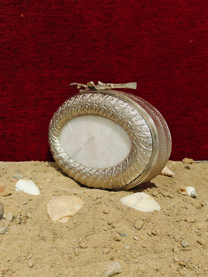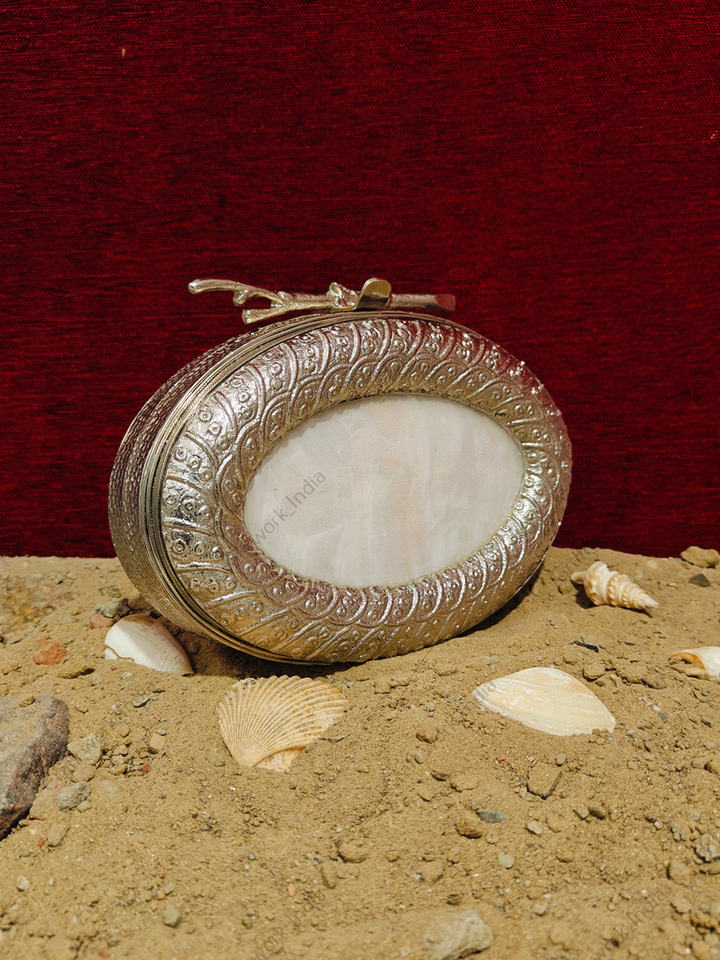 Hand engraved brass oval frame designDecoration