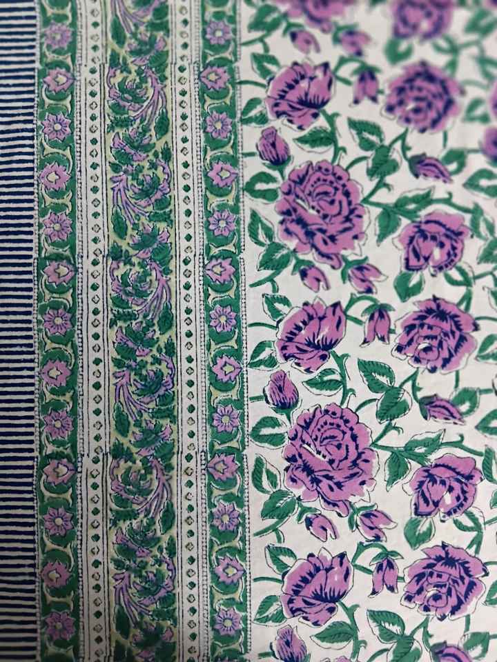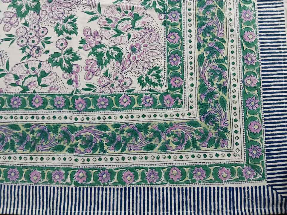 Indian Handcrafted Floral Cotton Table Cover with Block Print Design