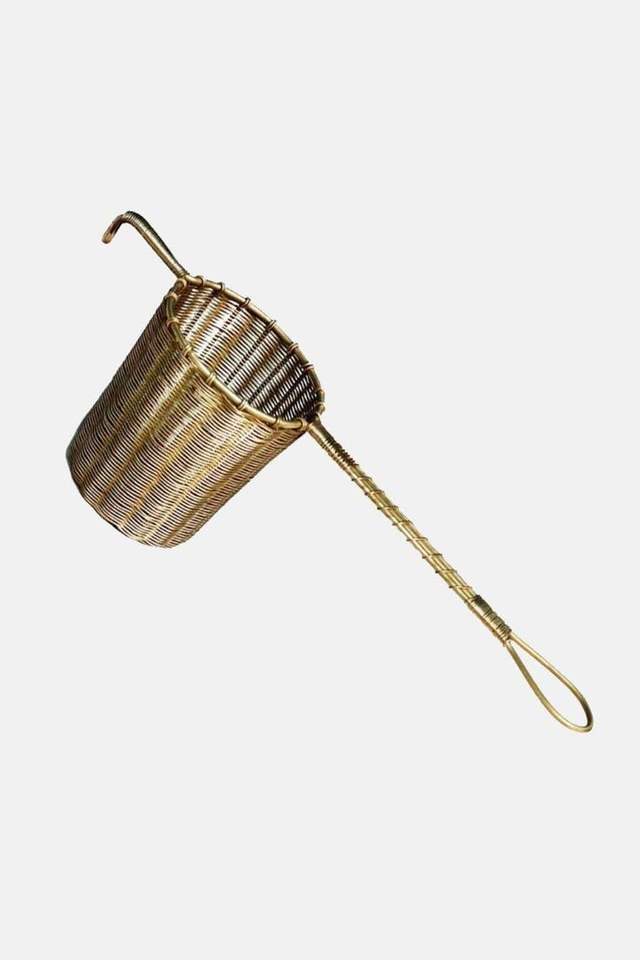 Indian Handcrafted WOVEN BRASS Small Tea Strainer With Handle Tightly Woven Basket Strains With Gold Finished Strainer