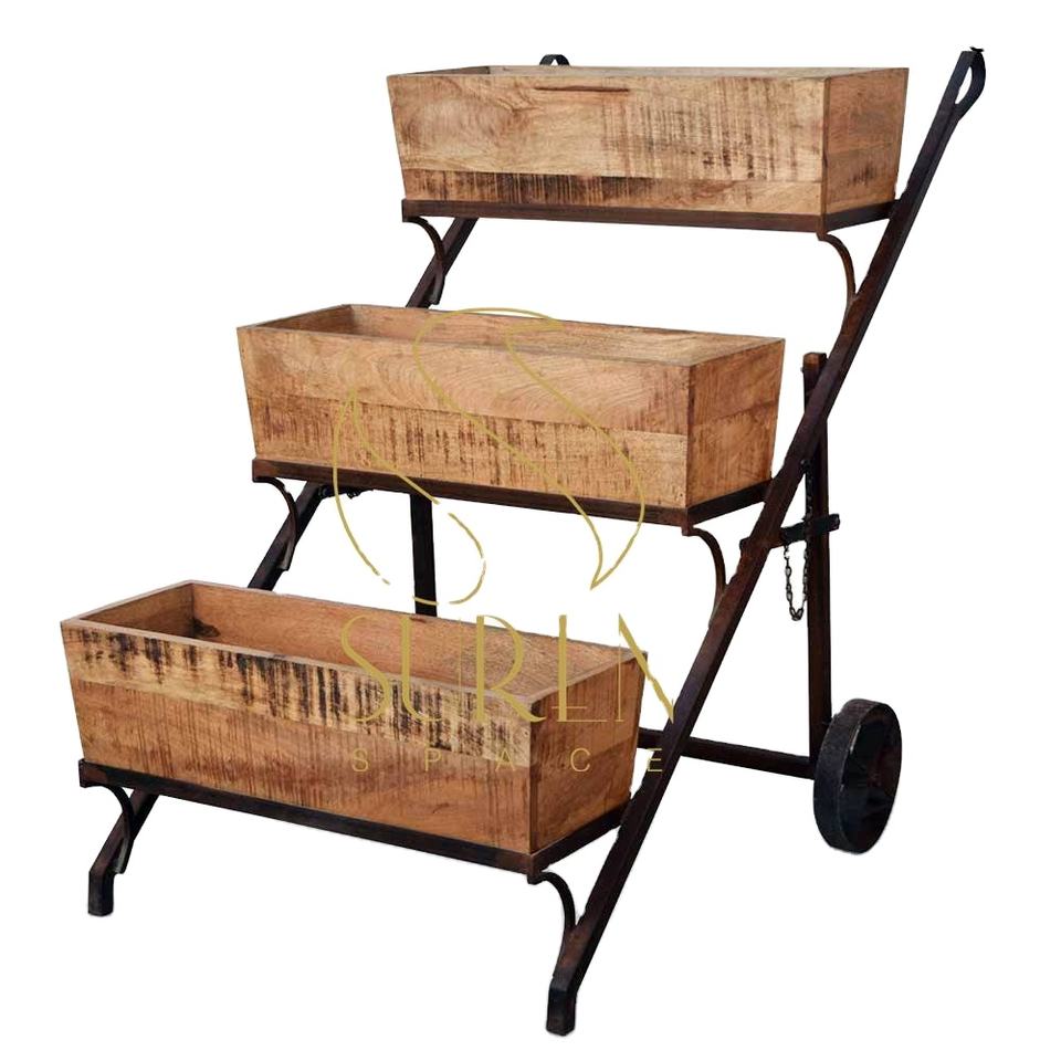 Indian Handcrafted Wooden Iron Wheel Trolley Industrial Design for Hotels Resorts Home Furniture Living Room for Vegetables