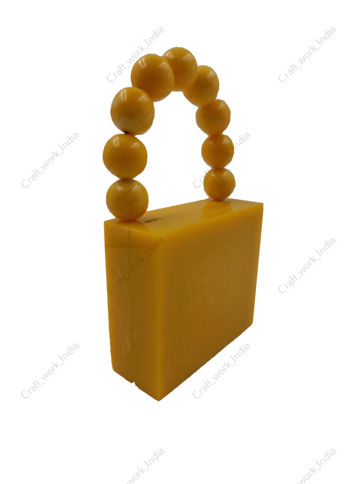 Indian Handcrafted Yellow Resin Clutch Bag With Beaded Handle Luxury Evening Party Women Statement Handbag