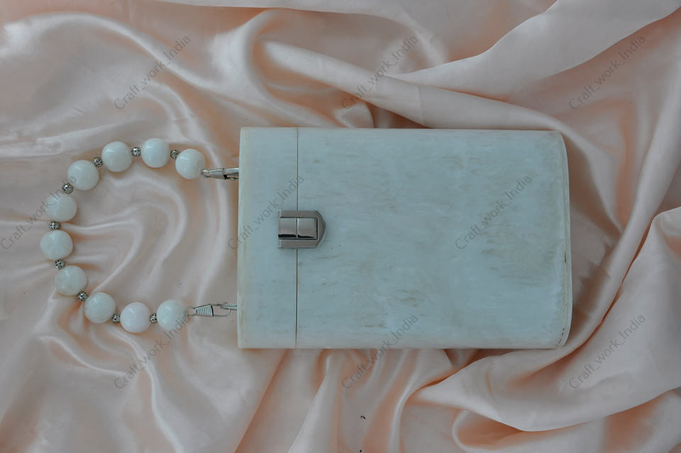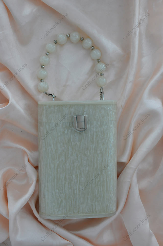 Indian Handcrafted resin clutch bag with bead handle luxury evening party womens designer hard case handbag
