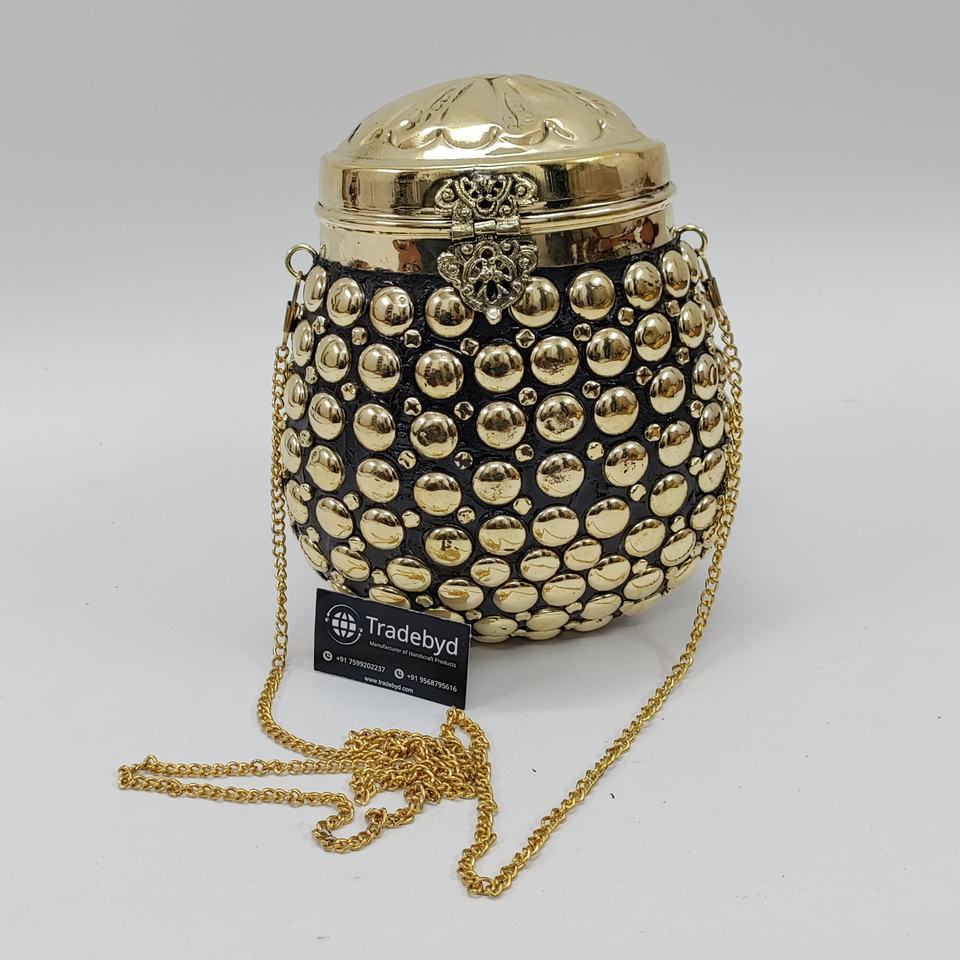 Indian Handicraft Mosaic Clutch Bag with Multicolor Metal Work and Pearl Straps for Party Wear