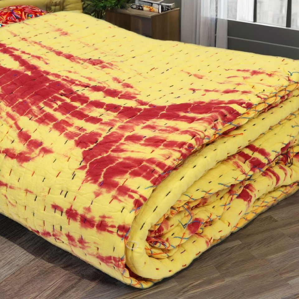 Indian Handmade 100% Cotton Kantha Quilt Winter Use Breathable Washable Plain Pattern Bedding Blanket for Home or Hotel Use