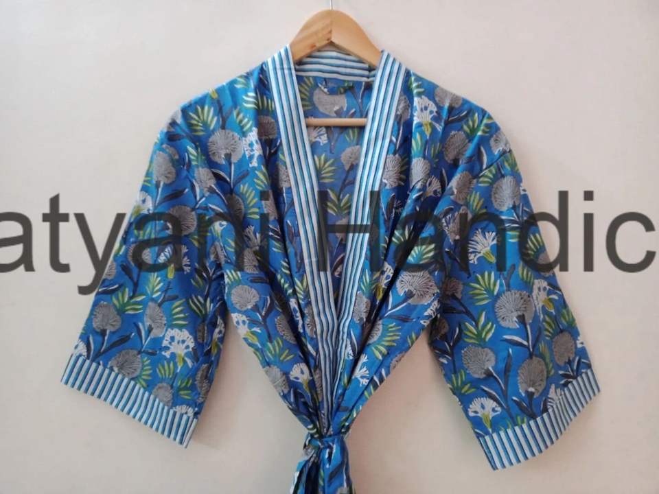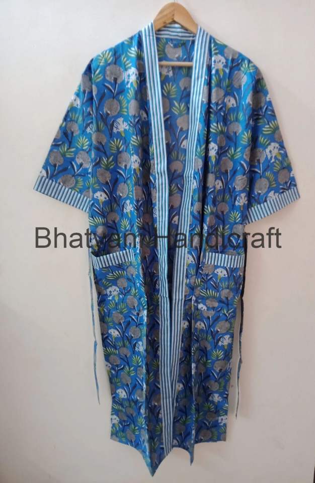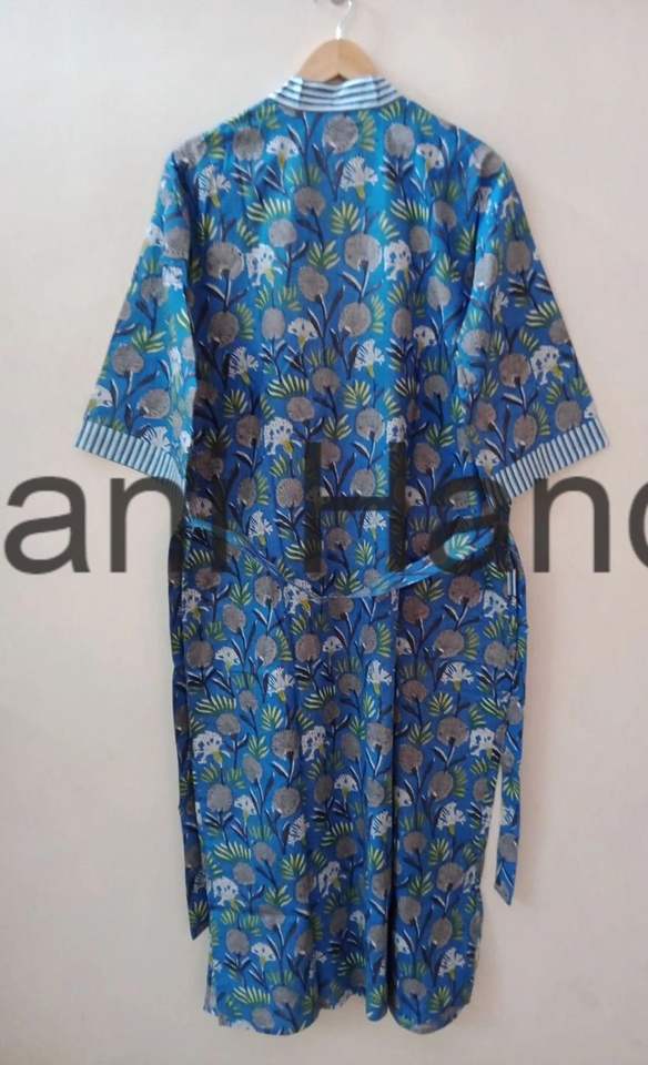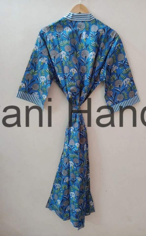 Indian Handmade 100% Cotton Maxi Dress Women's Natural Waistline Kimono Gown Soft Comfortable Floral Bath Robe Free Size