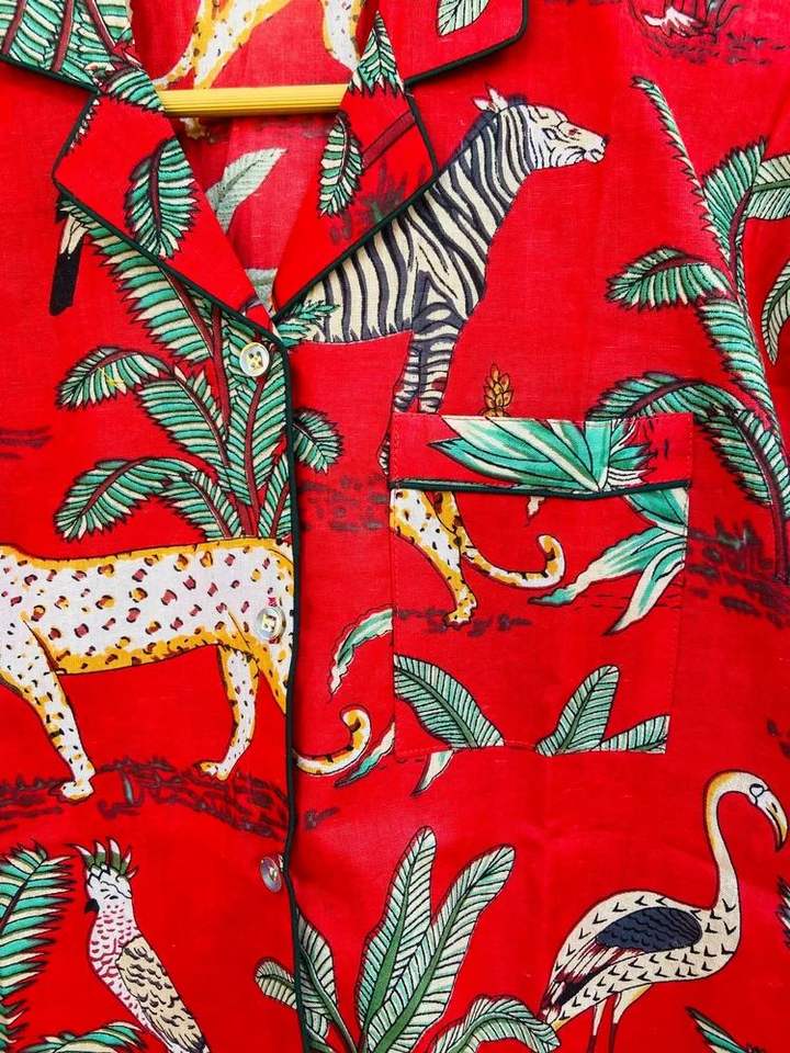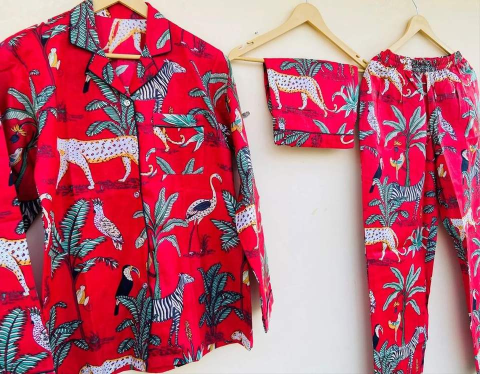 Indian Handmade 100% Cotton Night Suit Elegant Casual Floral Print Sleepwear for Spring Summer Autumn Vacation Luxury Nightwear