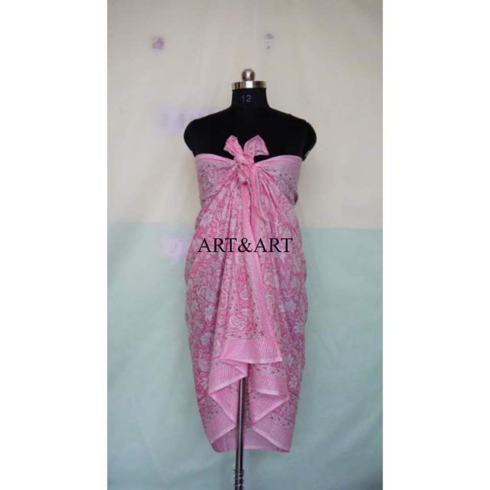 Indian Handmade 100% Organic Cotton Sarong Pario Paisley Custom pink Floral Print Eco-Friendly Summer Beach Wear Bath Cover