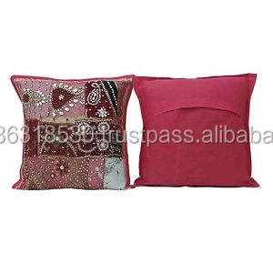 Indian Handmade 17'' Vintage Ethnic Square Cushion Cover Marine Patchwork Embroidered Beaded Throw Pillow Case for Home Hotel