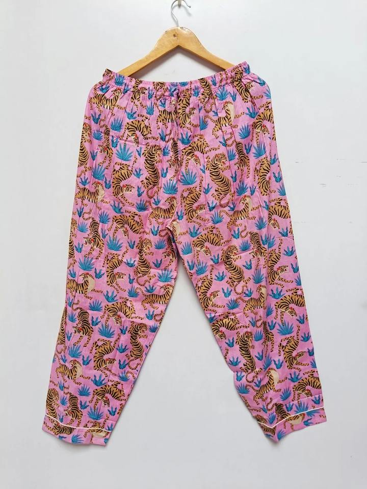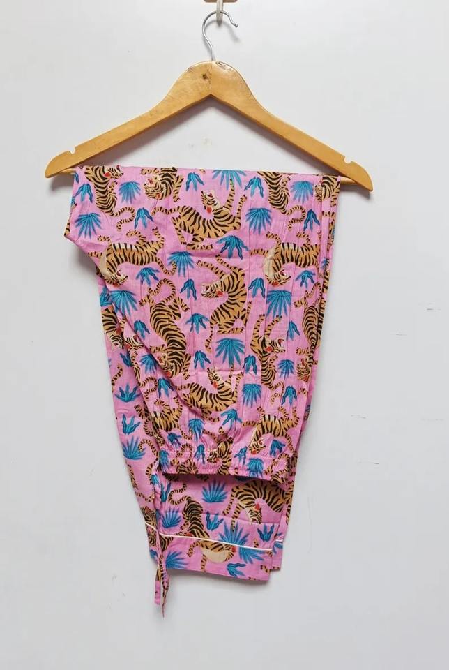 Indian Handmade Animal Print Cotton Night Dress Women Pajama Set Boho Pj Set Light Wight Pajama Set Bridal Party Wear