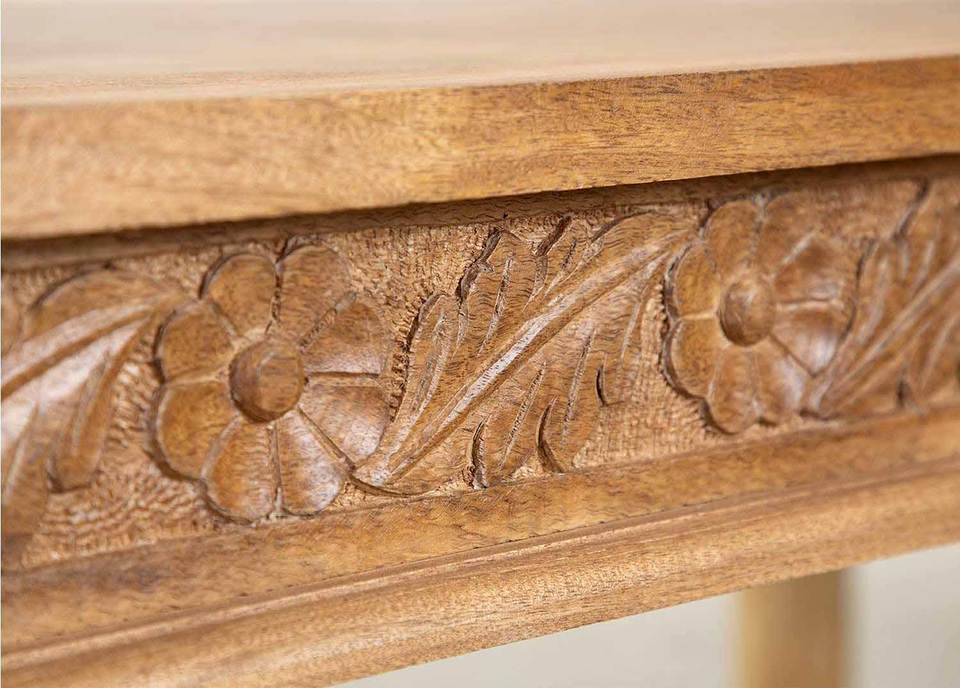 Indian Handmade Antique Style Solid Mango Wood Dining Table Carving Folded Home Office Kitchen Home Bar Featuring Marble