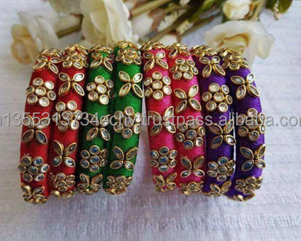 Indian Silk Thread Bangles Multicolor Kundan Bracelets Fashionable Bangles Wedding Favor Return Gift Haldi Mehndi Shagun Gifts