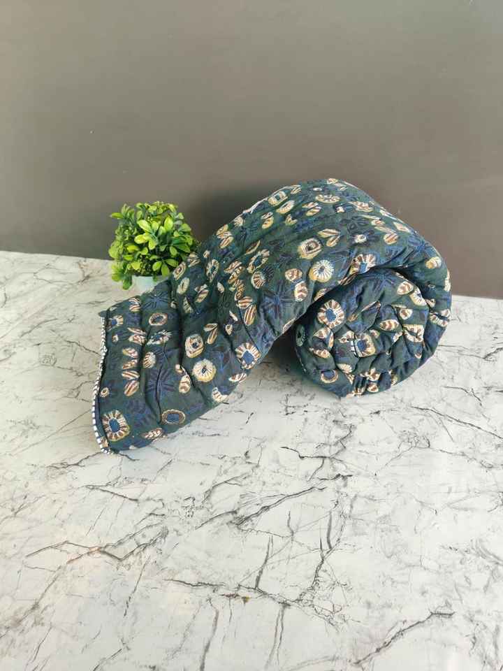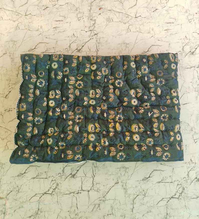 Indian Handmade Block Print Quilt Quilted Razai Boho Reversible Bedding Bedroom Decor
