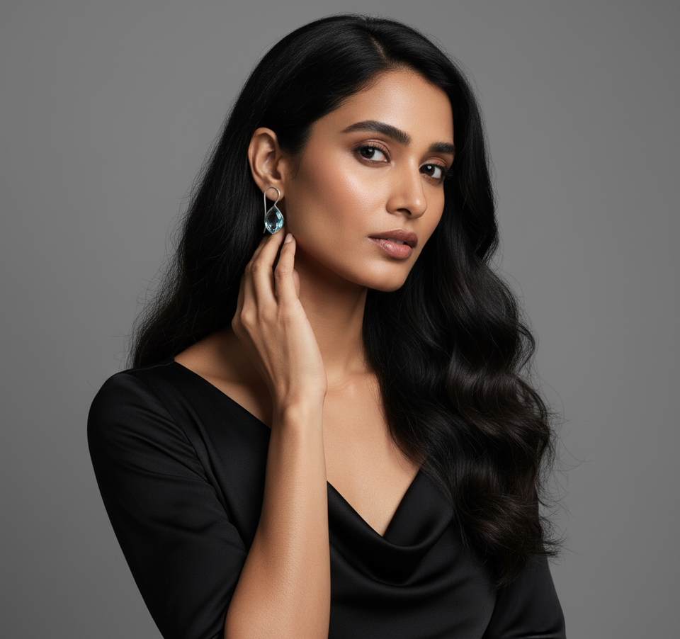 Indian Handmade Blue Topaz Drop Earrings in Sterling Silver Jewellery for Women and Girls Wear on Wedding Party's