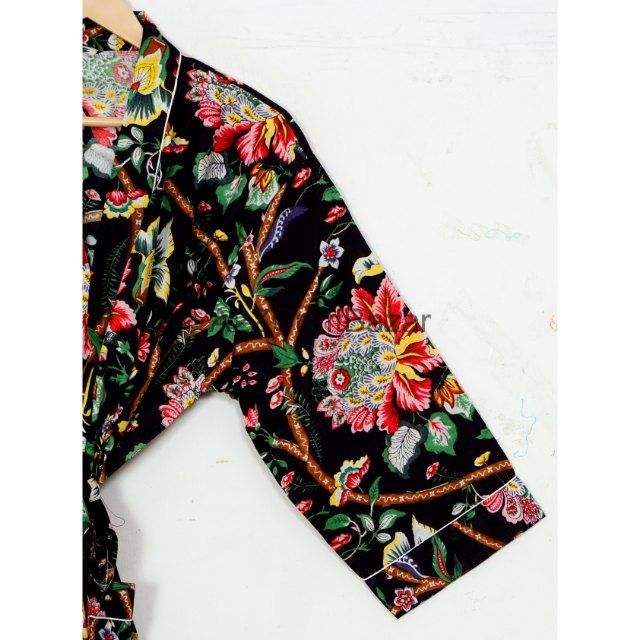Indian Handmade Cotton Maxi Gown Dress Premium Tiger Printed Floral Kimono Bathrobe Thermal Sleepwear Wholesale for Spring