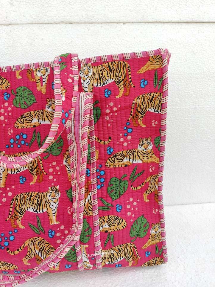 Indian Handmade Cotton Quilted Bag Women Shoulder Tote Shopping Travel Tote Bag With Inside Pockets Hand Block Printed Bag