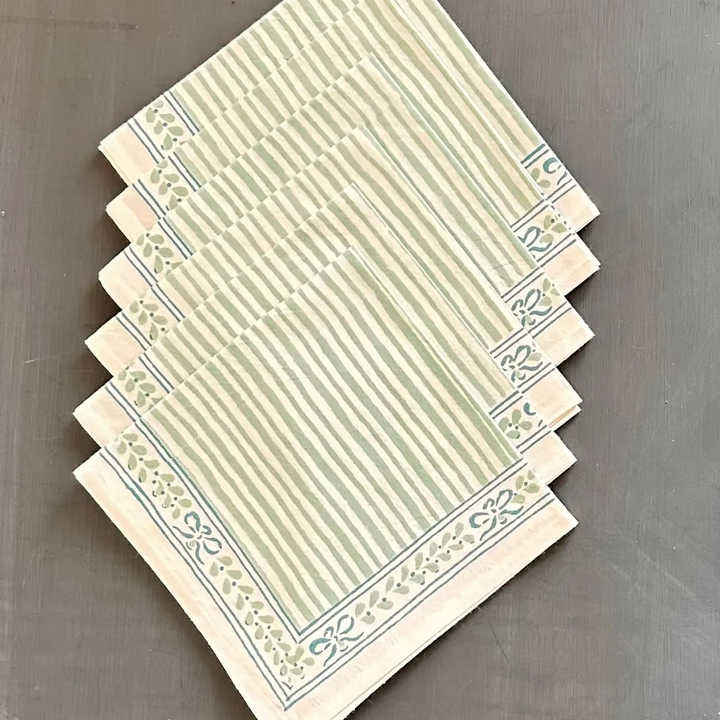 Indian Handmade Cotton Table Cover and Napkins 6 Piece Set Reusable Hand Block Printed Flower Design for Home Use